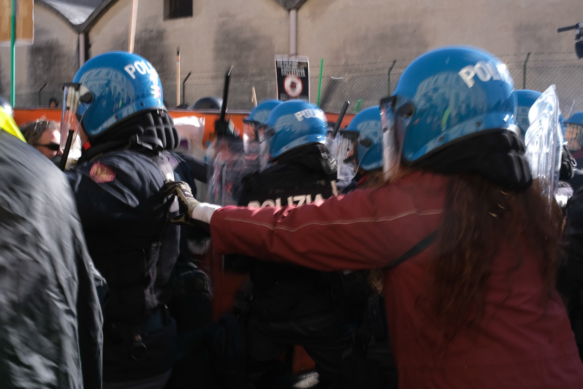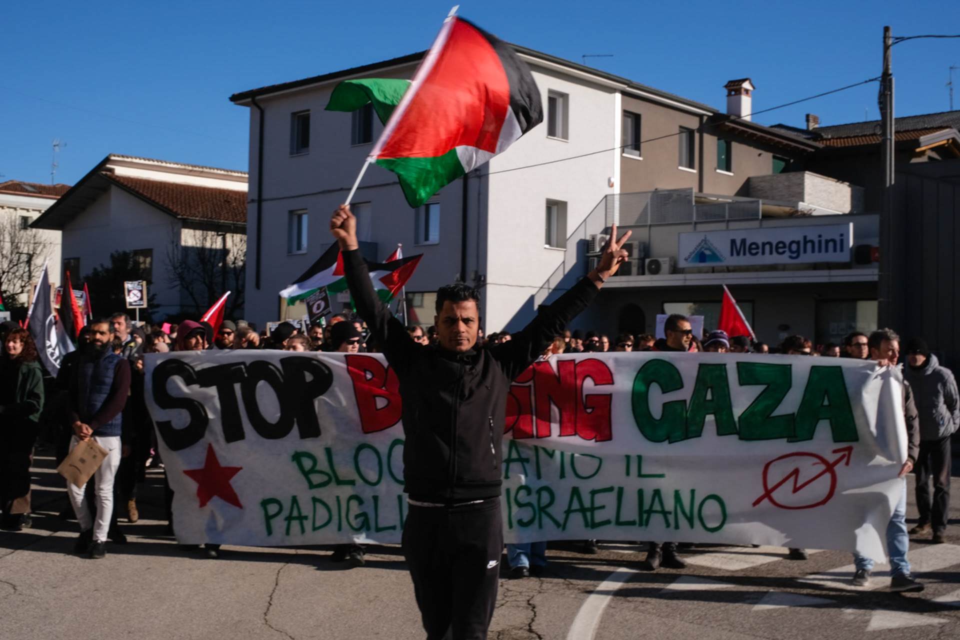 On January 20, 2024, Vicenza hosted one of Italy's most prestigious gold fairs. As every year, the event featured various pavilions of interest, including the Israeli one. This year, however, social centers from the North-East decided to protest against the presence of the State of Israel at the fair, organizing a large demonstration that started from Vicenza's train station. The march eventually deviated from its planned route and headed towards the fair's gates, which had been closed in advance by the police. Despite this, the protesters managed to breach the gates using an angle grinder. A violent clash ensued with the police—a level of violence unseen in Italian demonstrations for years. The protesters were armed with helmets and iron bars, while the police responded with water cannons. The confrontation ended around noon, resulting in several injuries and arrests. Vicenza, 20/01/2024